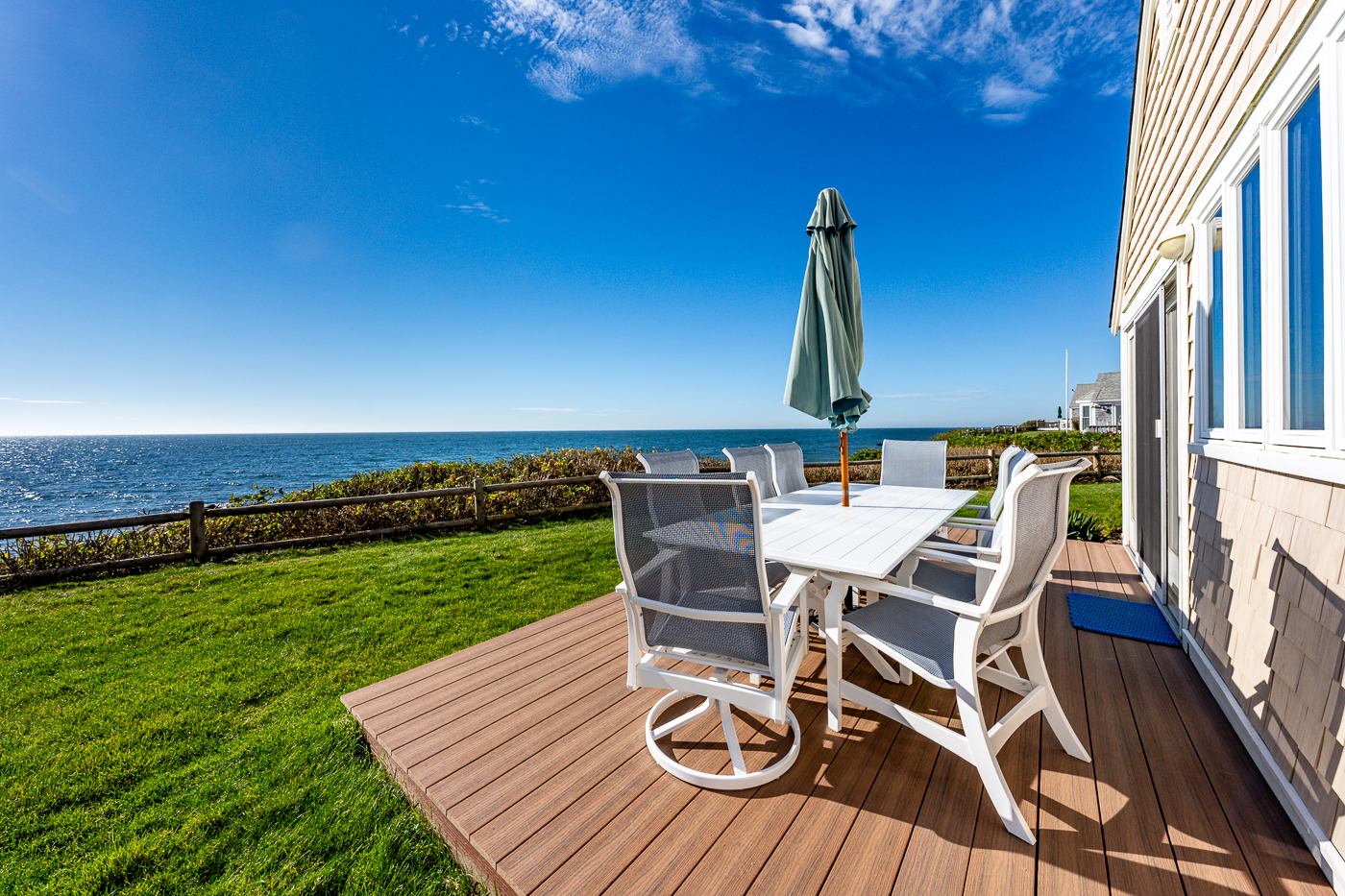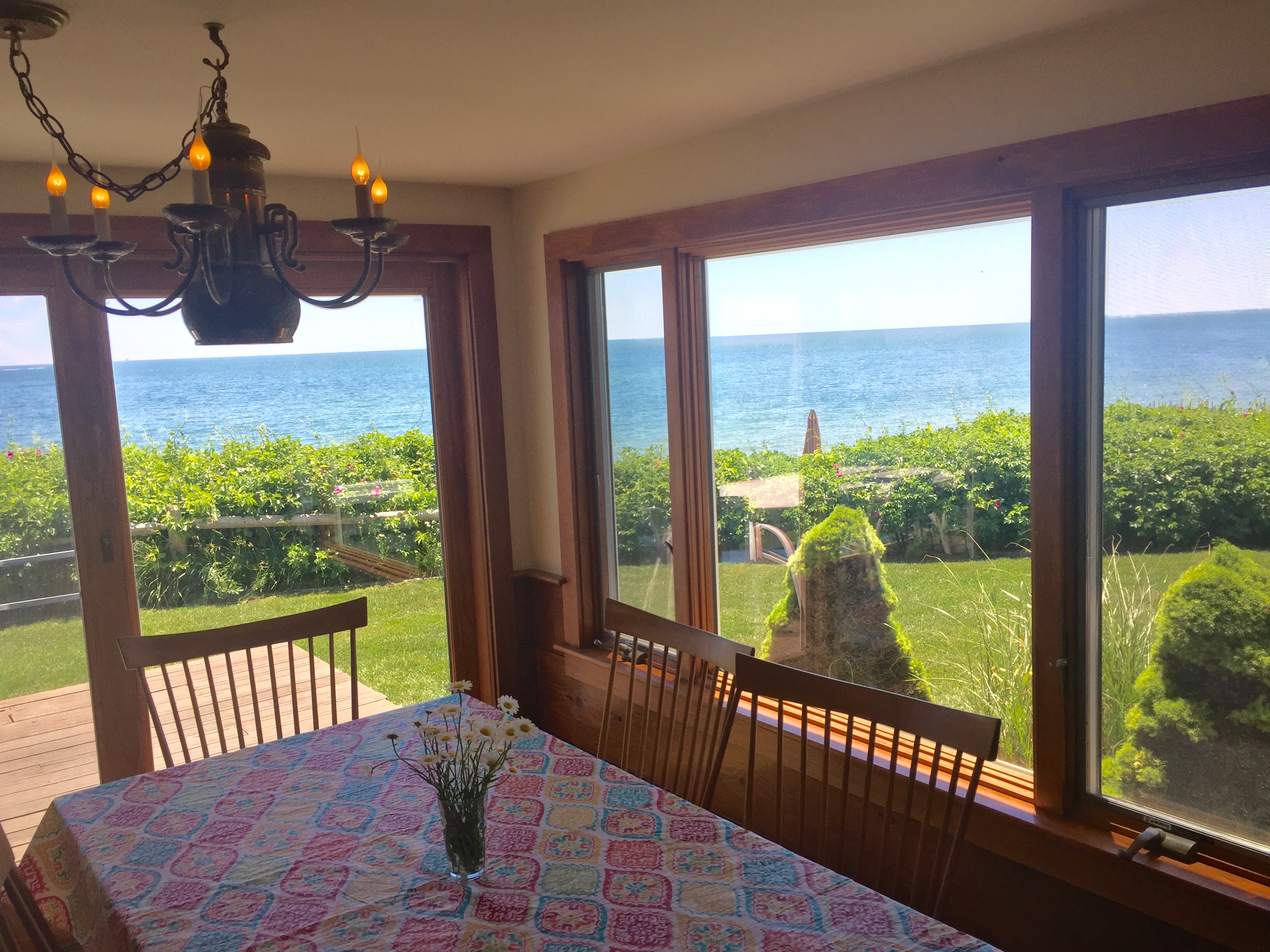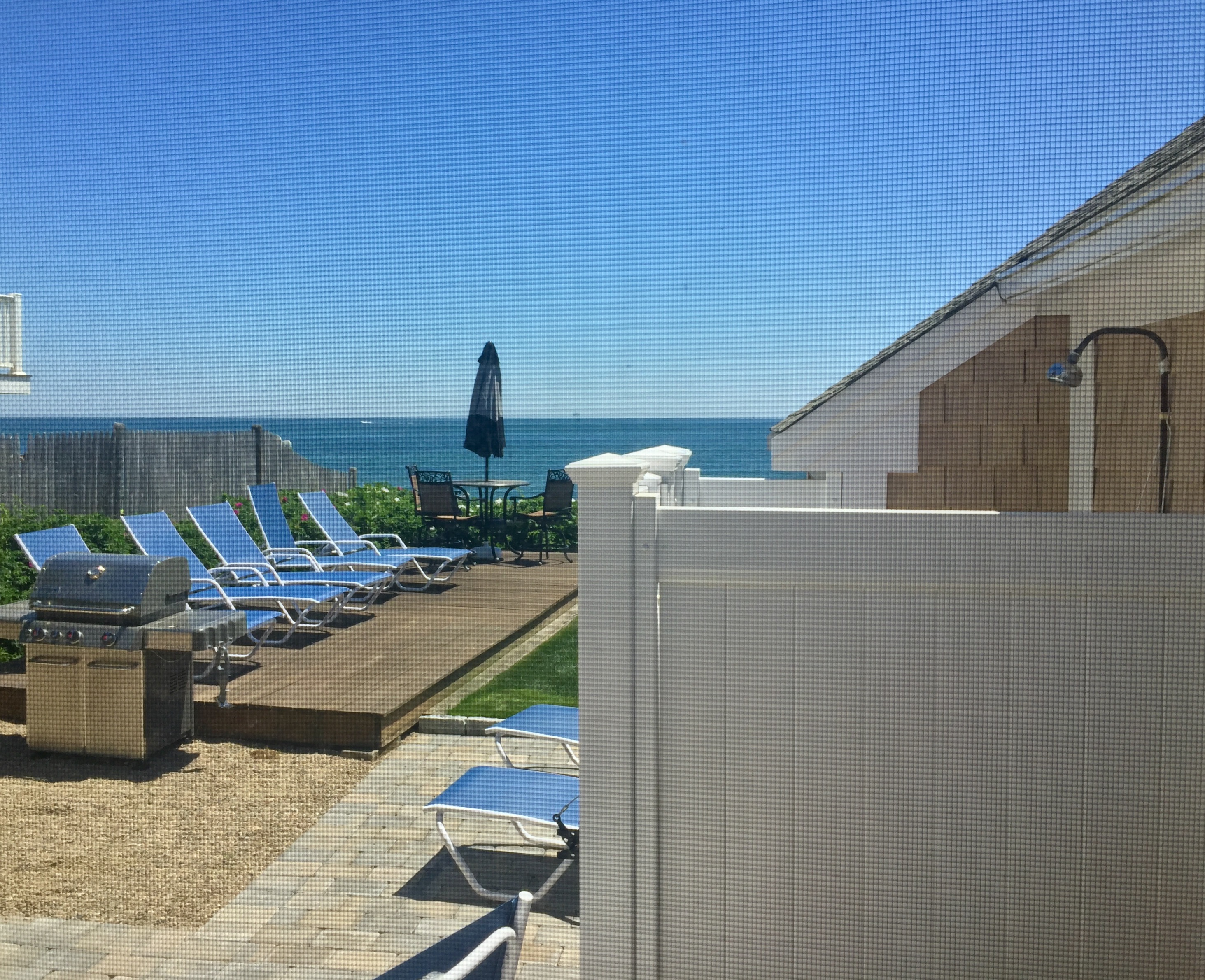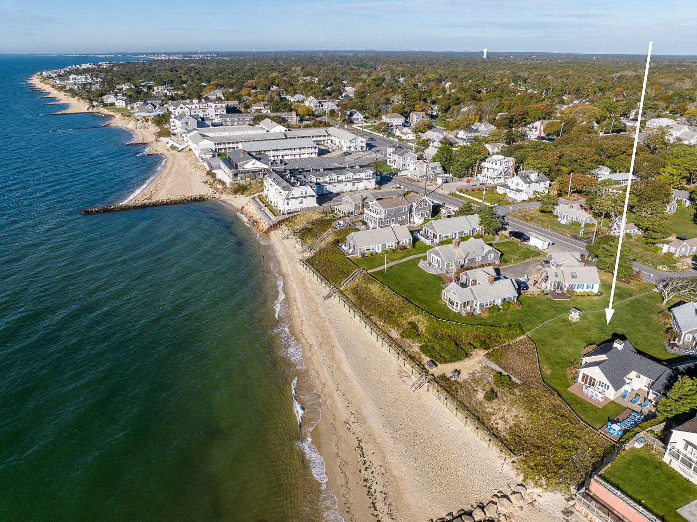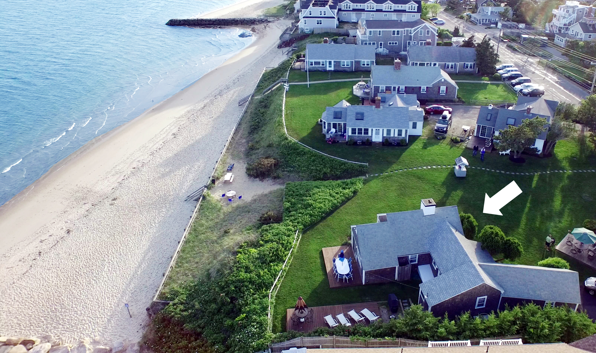 WATERFRONT HOME: The home is located directly on the sparkling Nantucket Sound, the warmest water on Cape Cod, with a sandy private beach, professionally landscaped yard with manicured green grass and loads of pink and white beach roses, 180 degree view of the ocean, two outdoor decks with plenty of chairs, lounges and outdoor dining for 10.