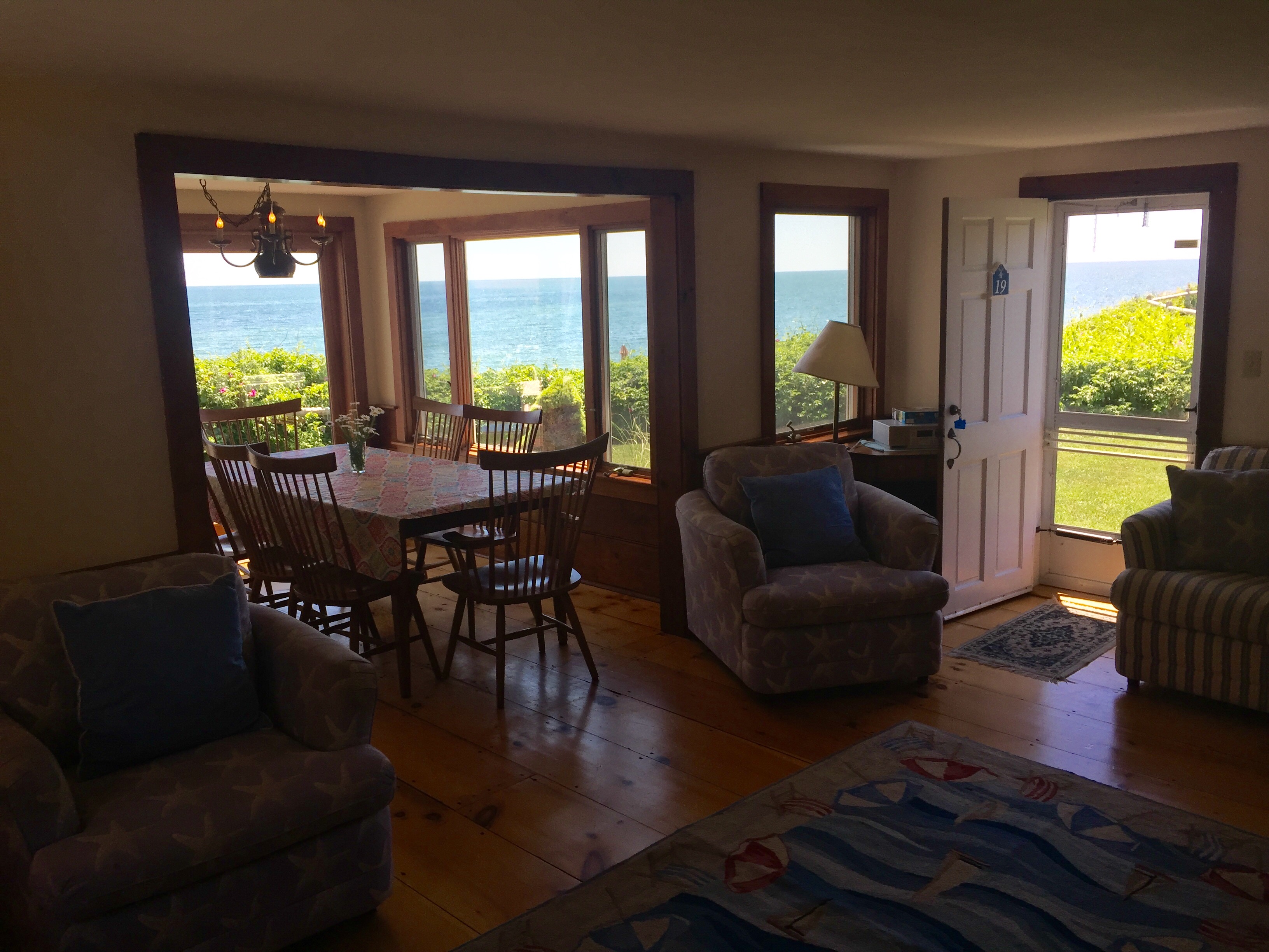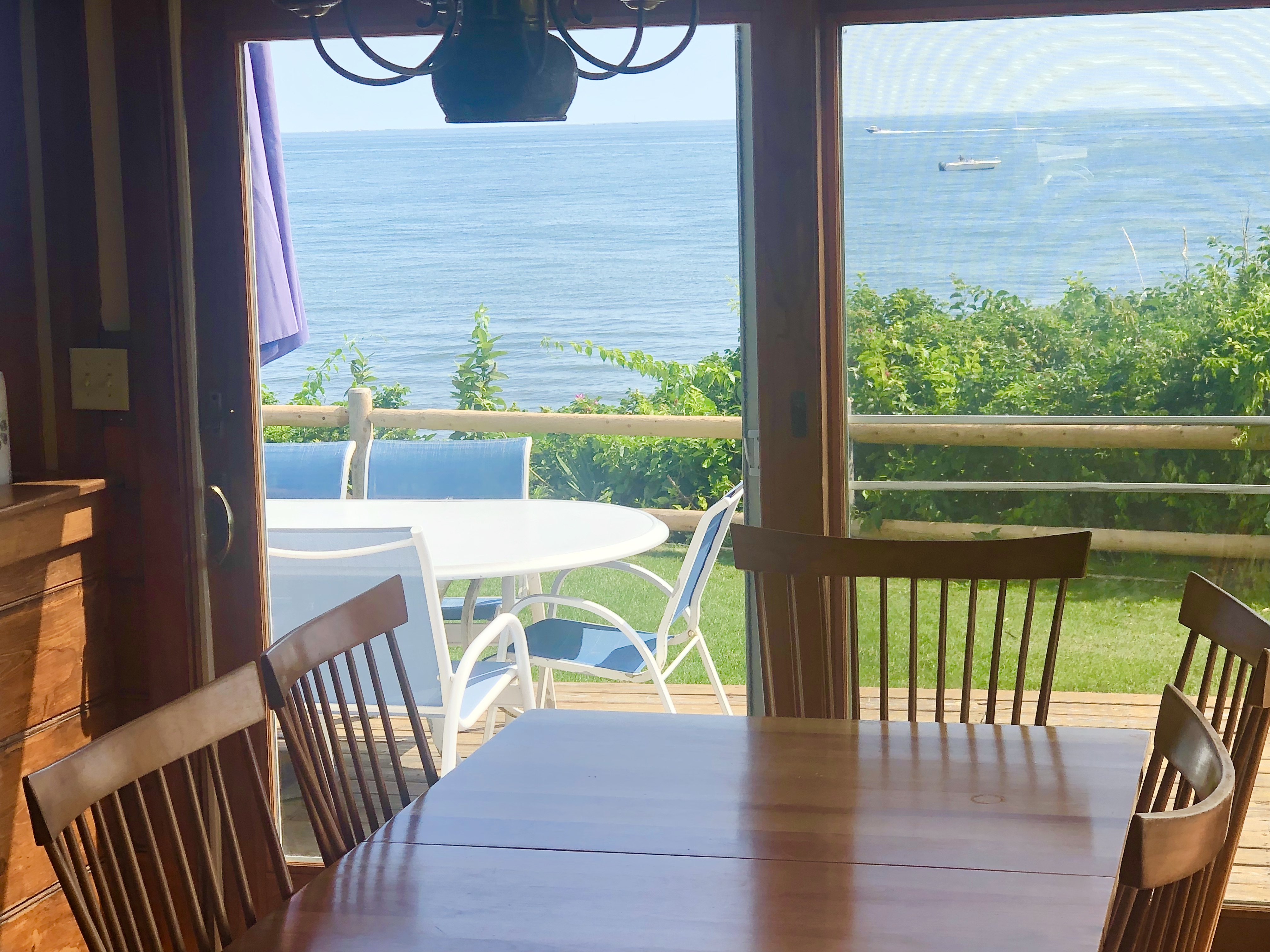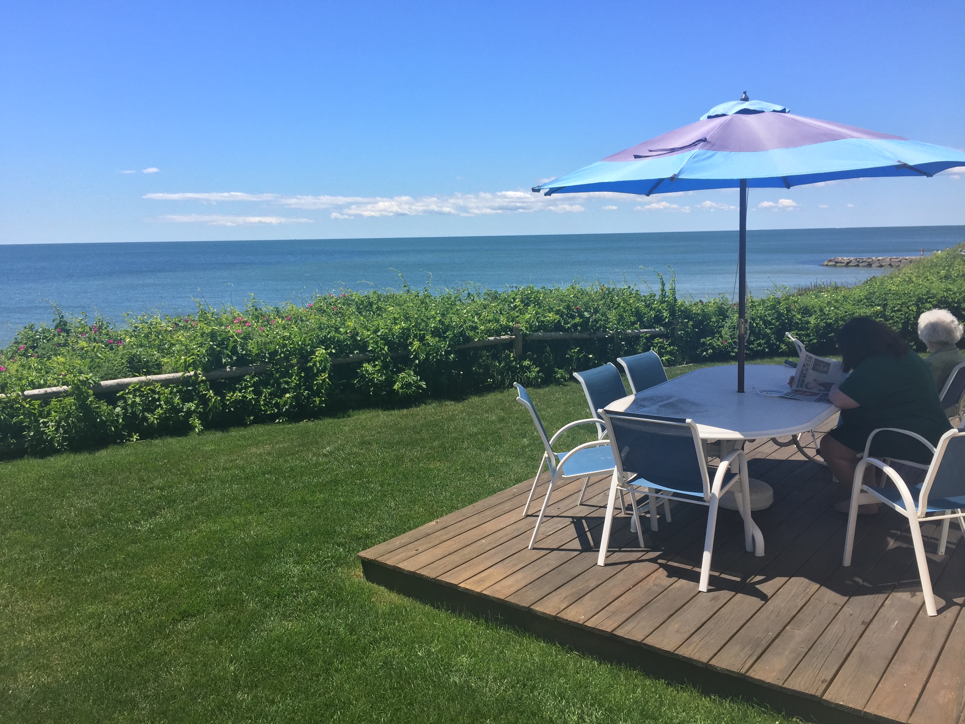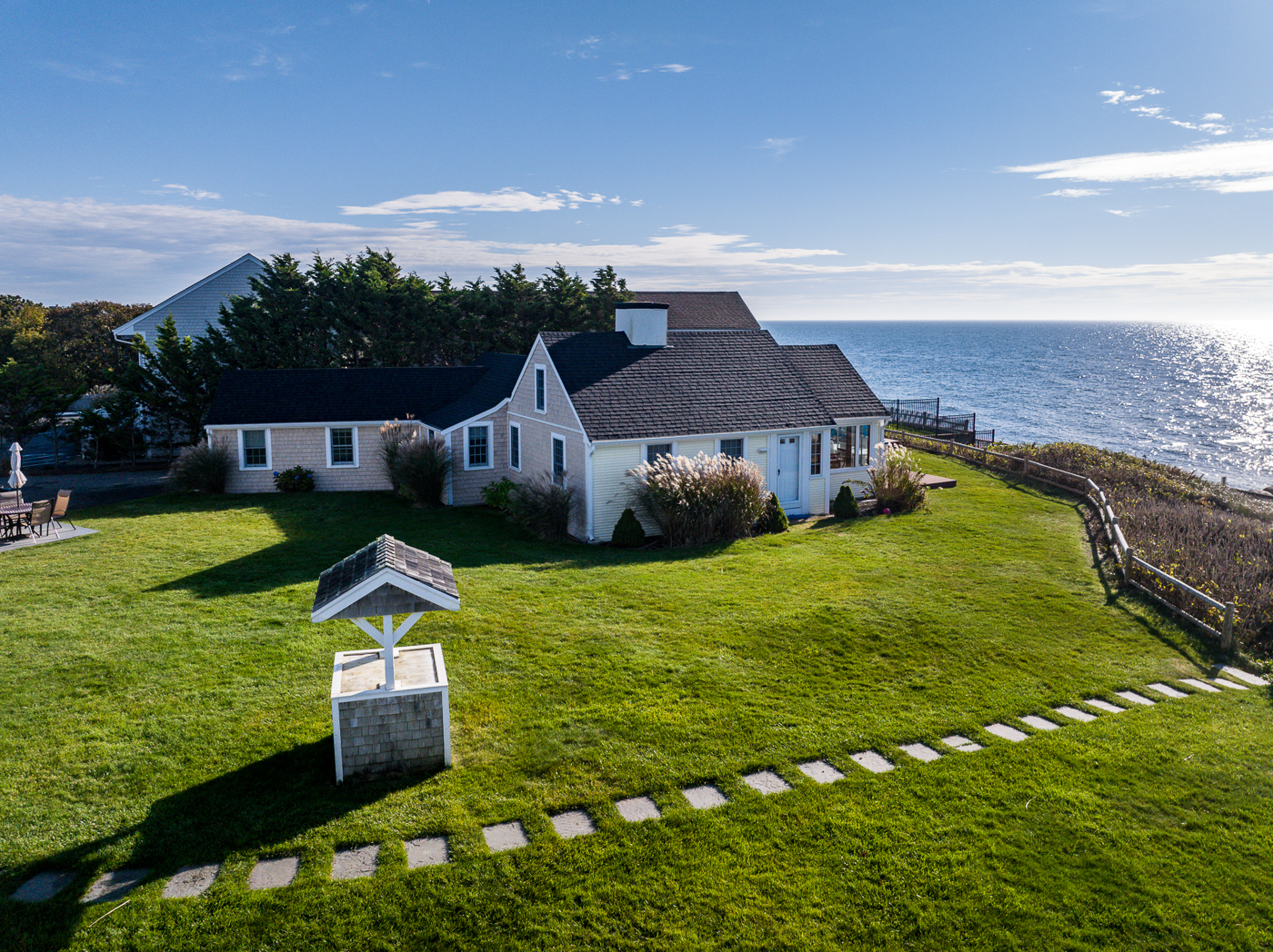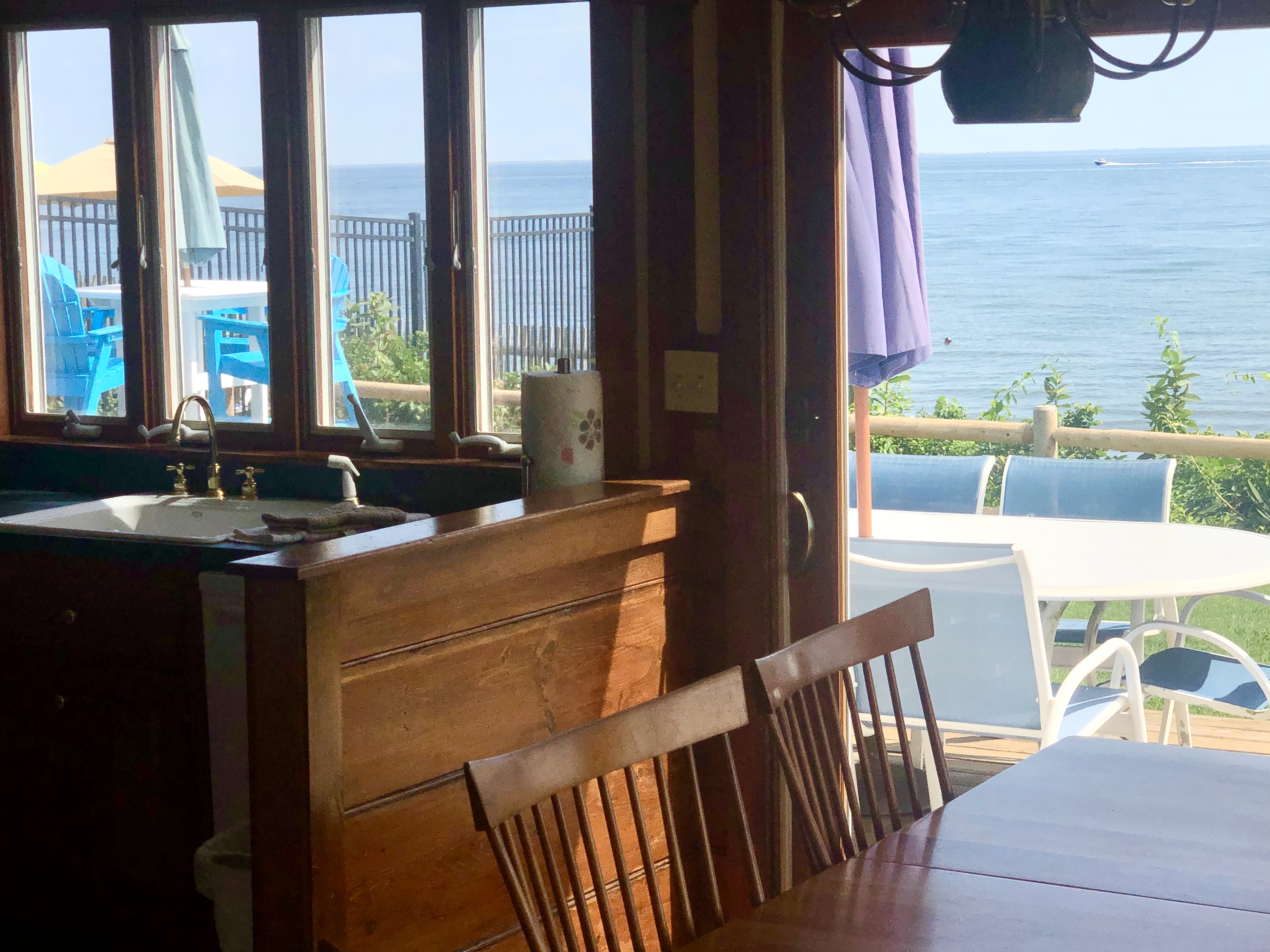WATERFRONT HOME: The home is located directly on the sparkling Nantucket Sound, the warmest water on Cape Cod, with a sandy private beach, professionally landscaped yard with manicured green grass and loads of pink and white beach roses, 180 degree view of the ocean, two outdoor decks with plenty of chairs, lounges and outdoor dining for 10.