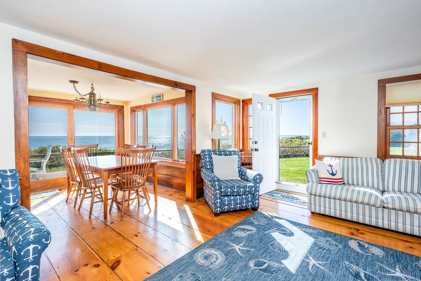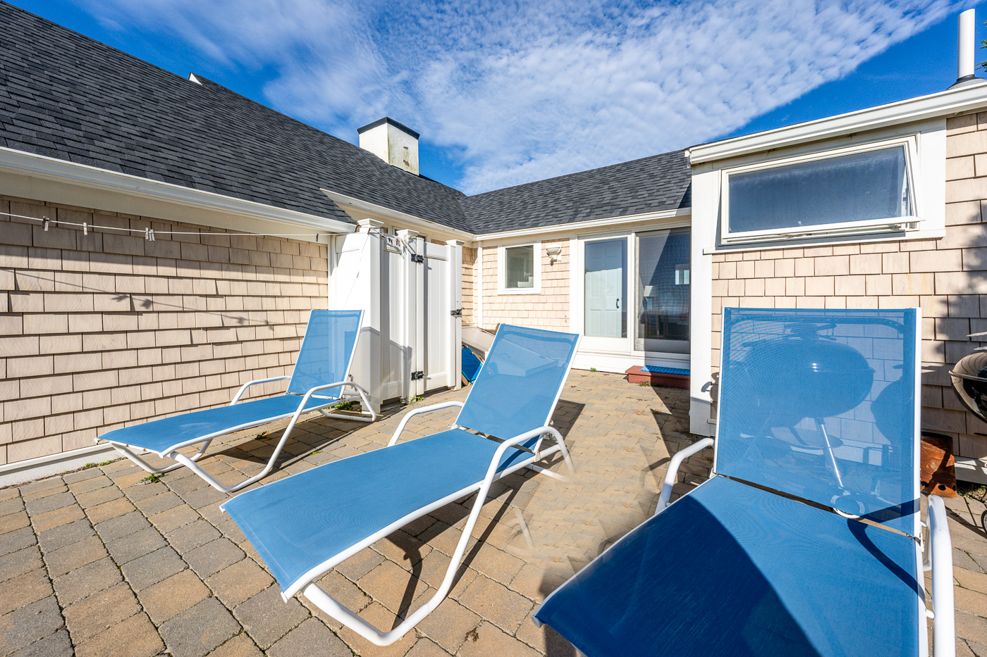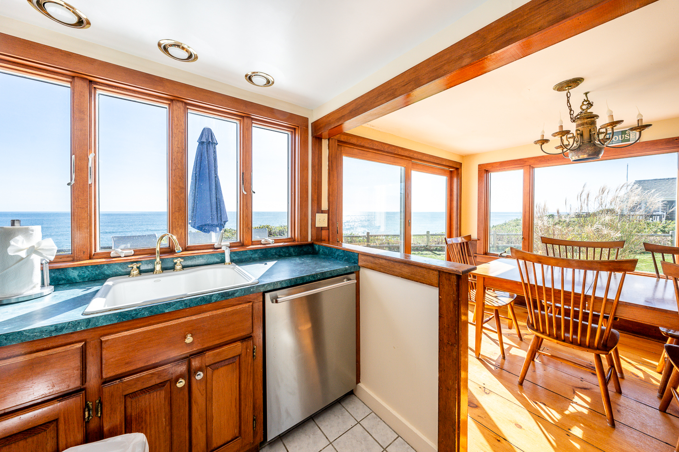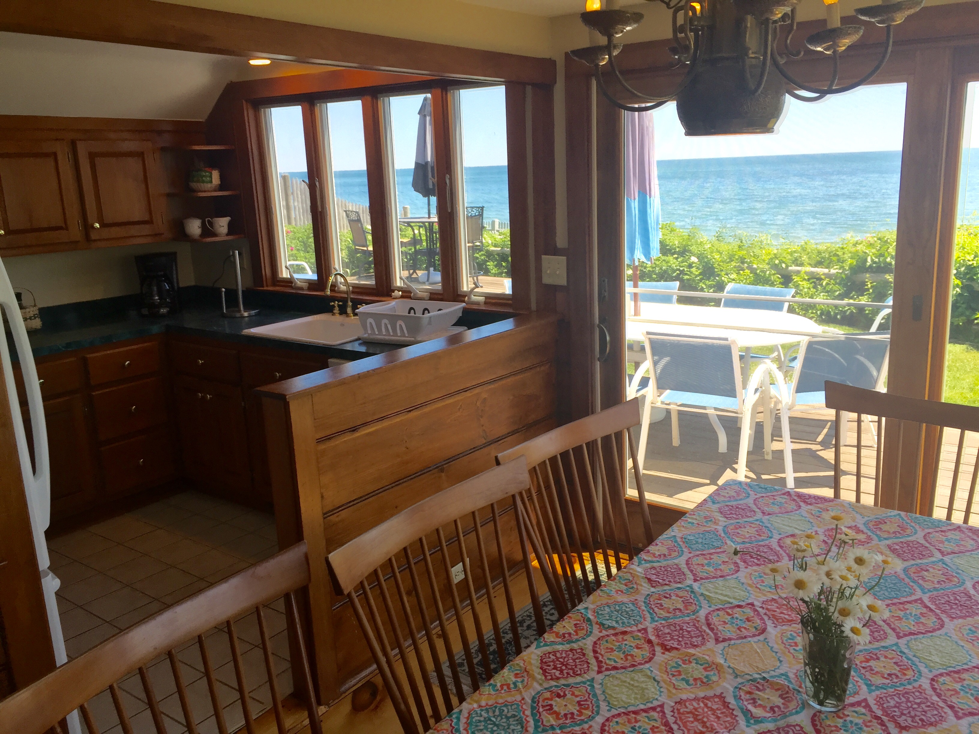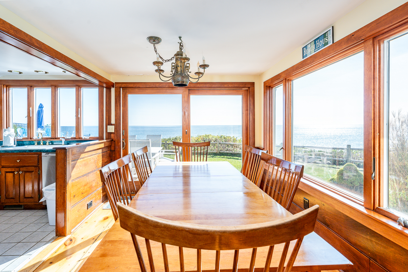 WATERFRONT HOME: The home is located directly on the sparkling Nantucket Sound, the warmest water on Cape Cod, with a sandy private beach, professionally landscaped yard with manicured green grass and loads of pink and white beach roses, 180 degree view of the ocean, two outdoor decks with plenty of chairs, lounges and outdoor dining for 10.