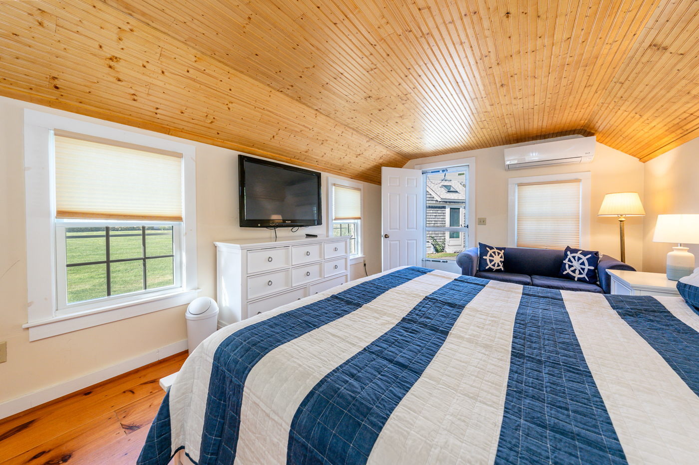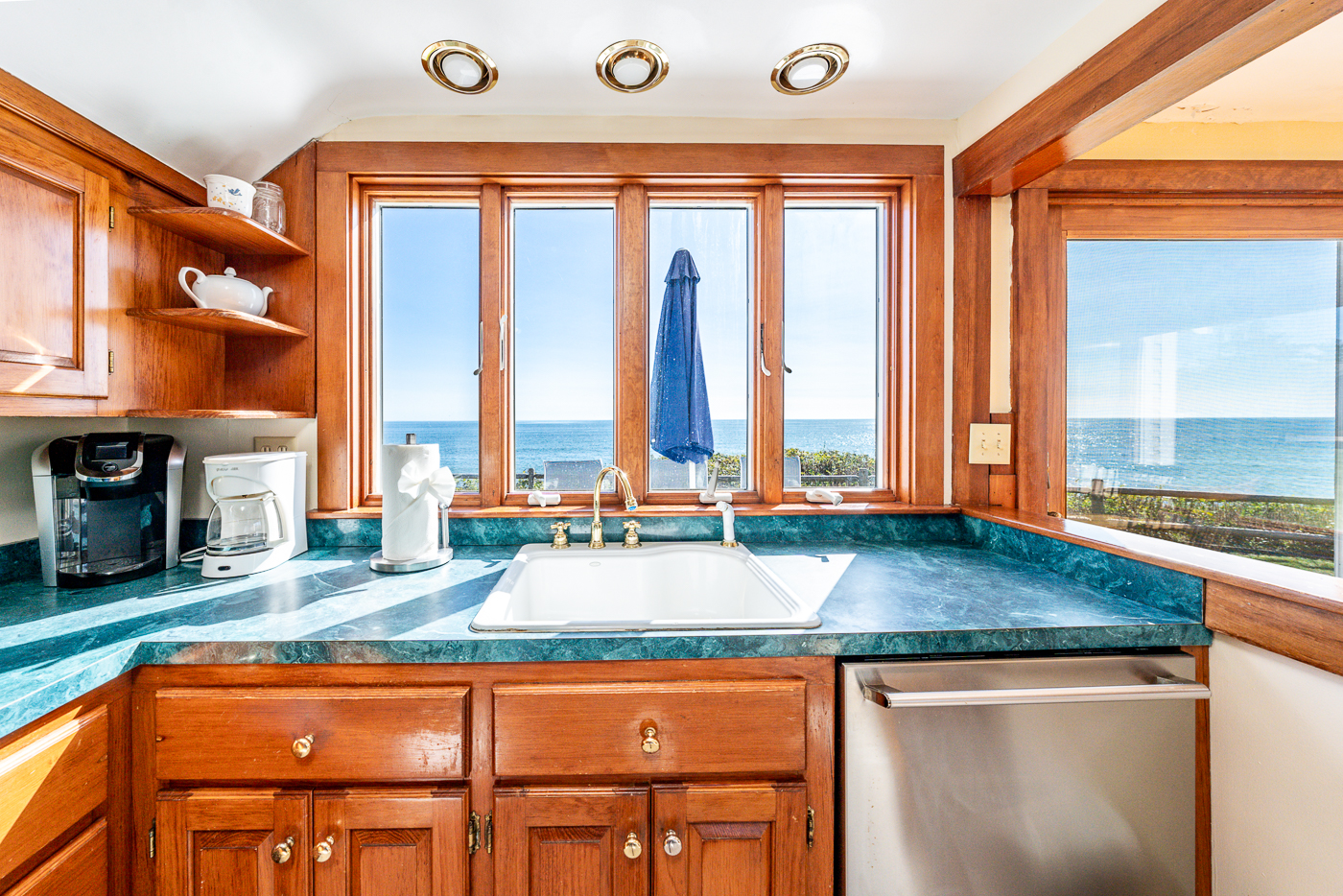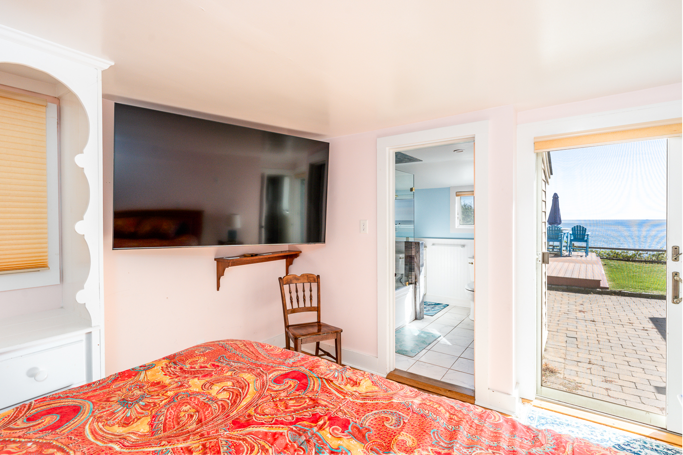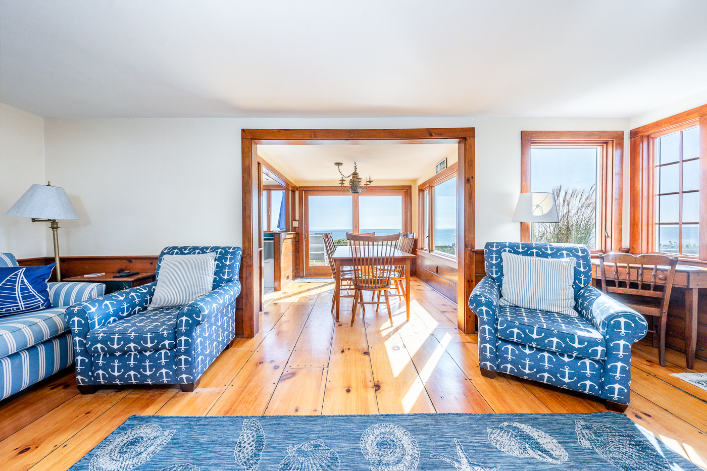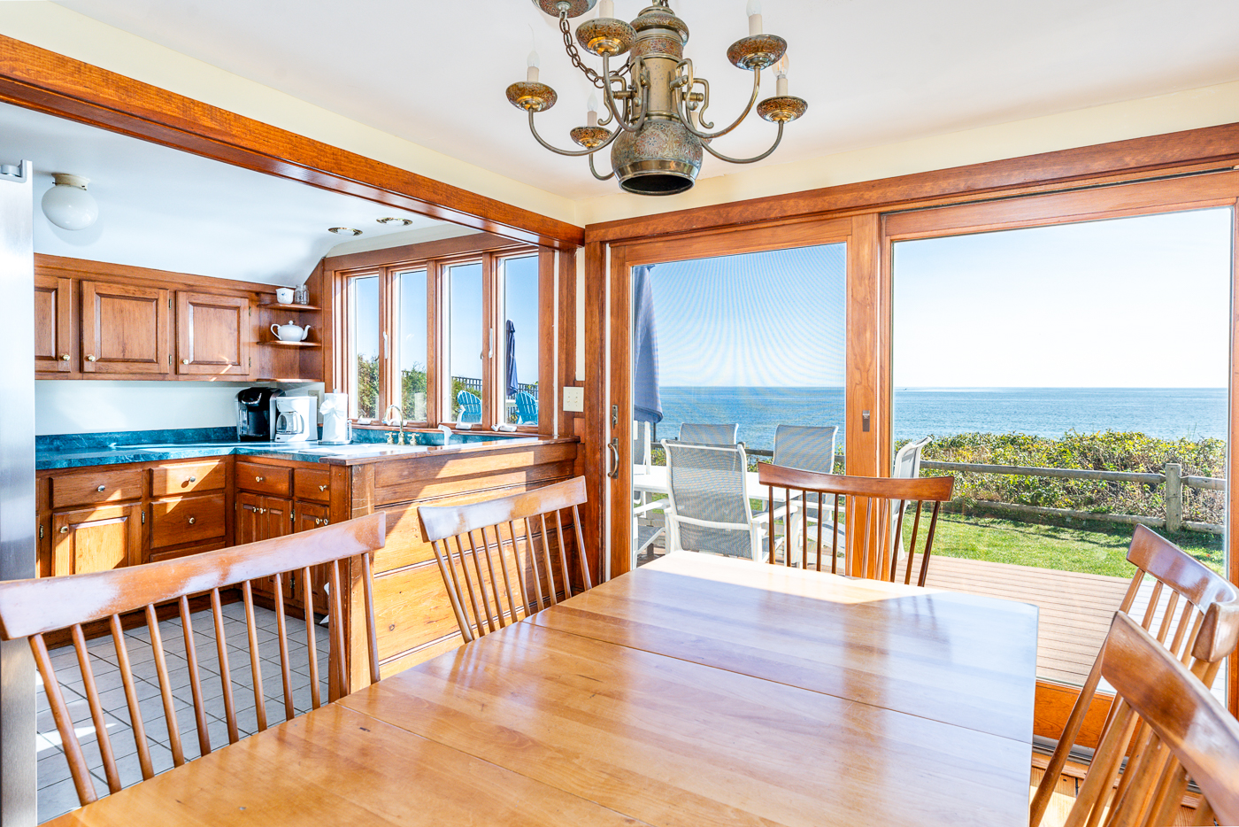 WATERFRONT HOME: The home is located directly on the sparkling Nantucket Sound, the warmest water on Cape Cod, with a sandy private beach, professionally landscaped yard with manicured green grass and loads of pink and white beach roses, 180 degree view of the ocean, two outdoor decks with plenty of chairs, lounges and outdoor dining for 10.