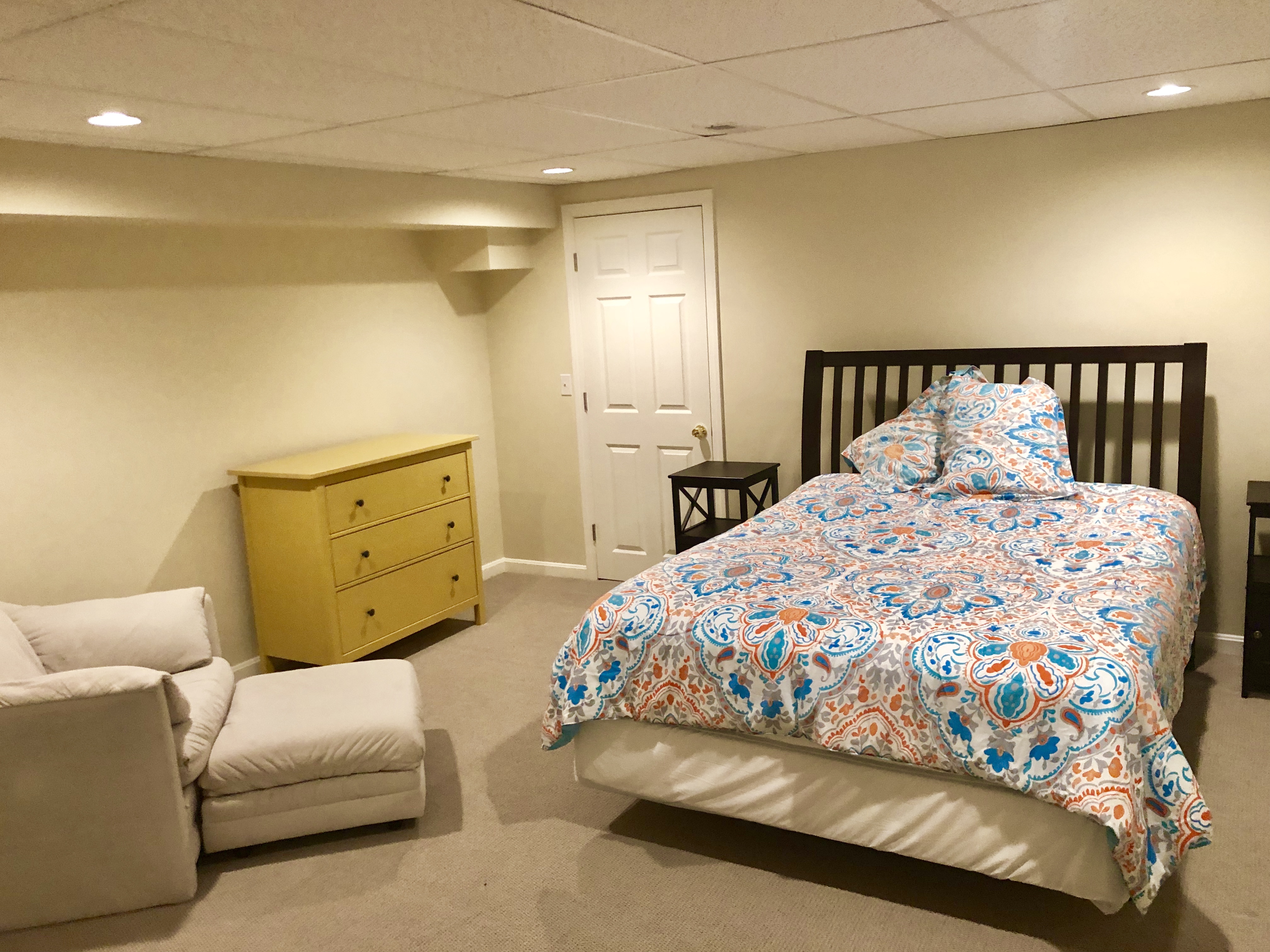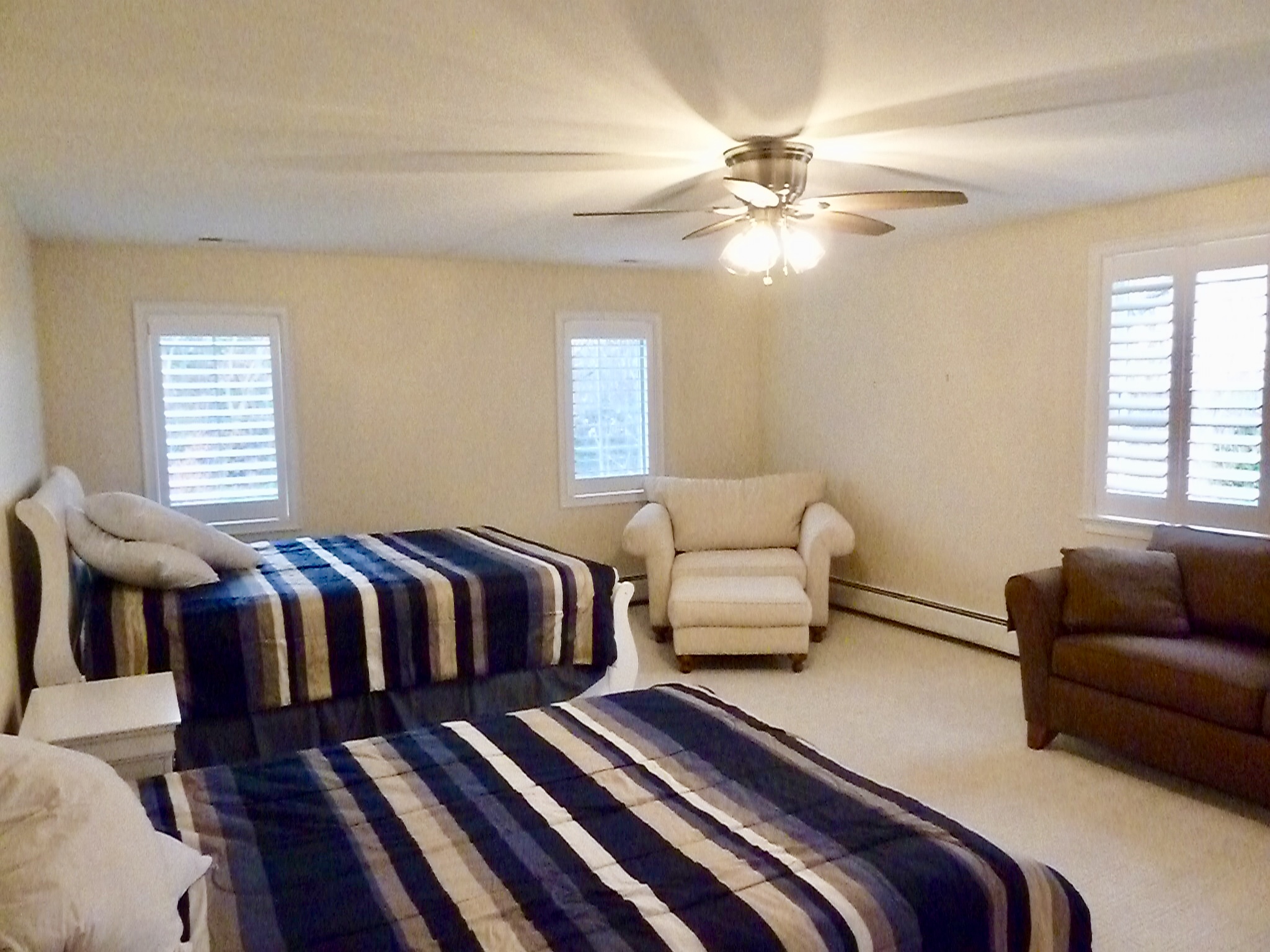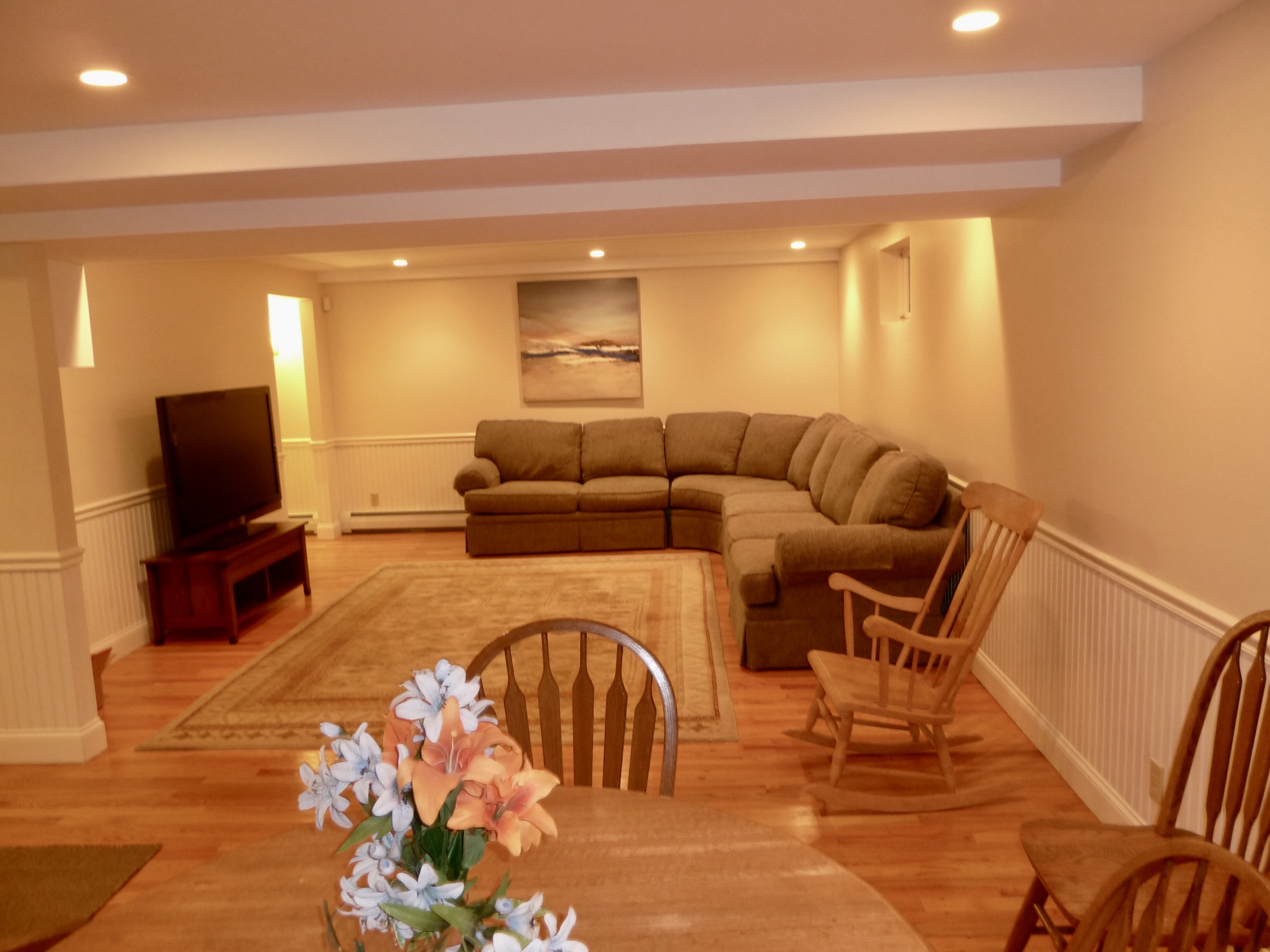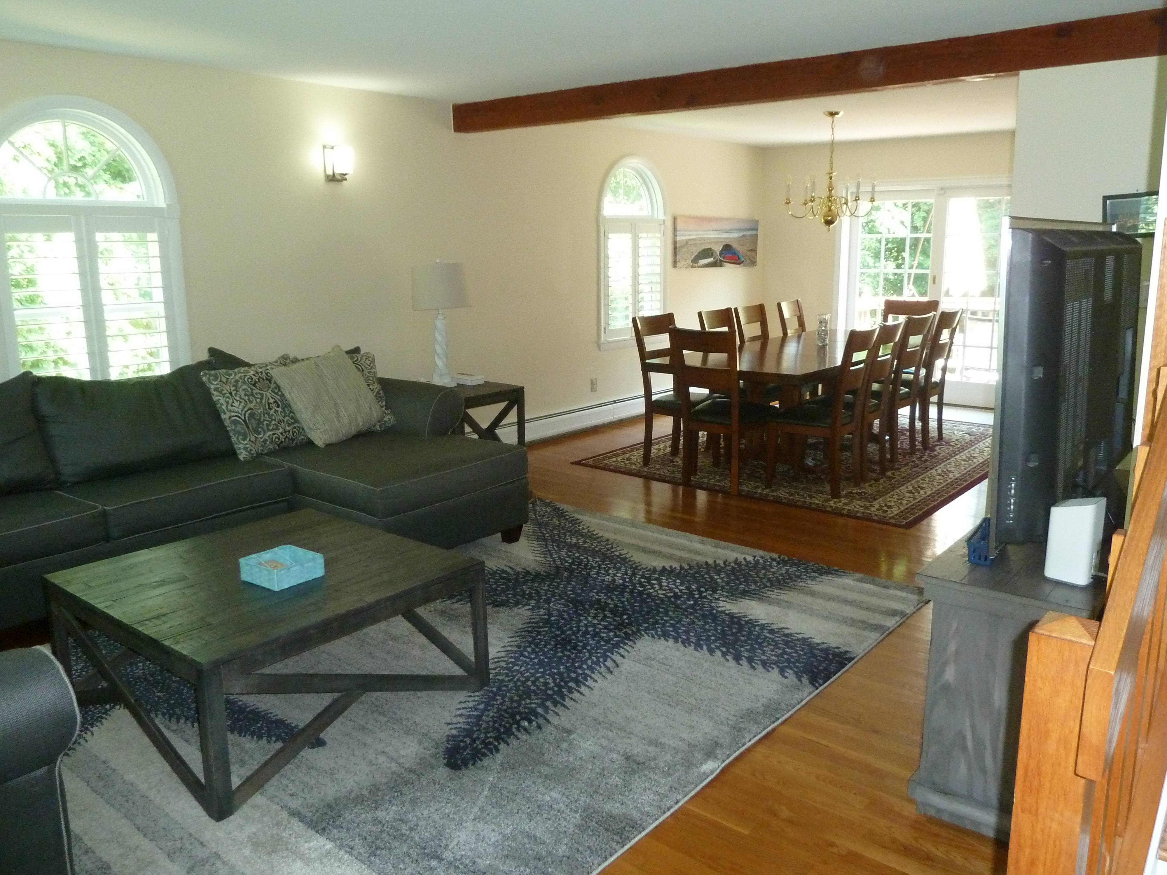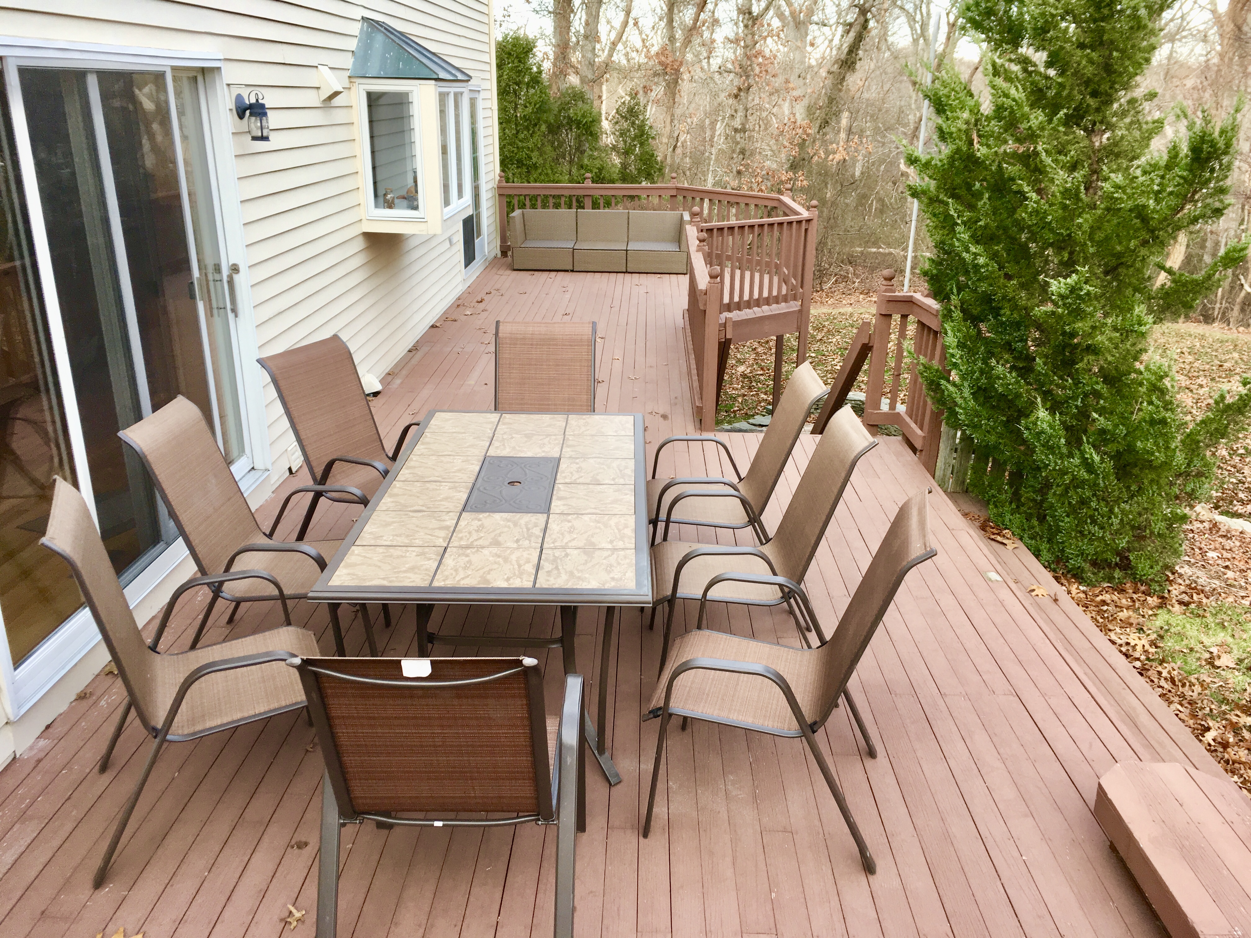 This spacious home has 4 floors which include: 7 voluminous bedrooms, Large living areas, High end designer kitchen with an enormous dining area, Two 55 inch and one 42 inch flat screen TVs. New beds/mattresses; Central A/C, fire place, free WIFI and Xfinity cable. Finished basement – walk out to a professionally manicured scenic yard. Wrap around deck and fire pit. Patio offering new furniture/grill/canopies. Outdoor shower which provides privacy in the alfresco open air. Two car garage, ping pong table and outdoor basketball net for the young at heart.