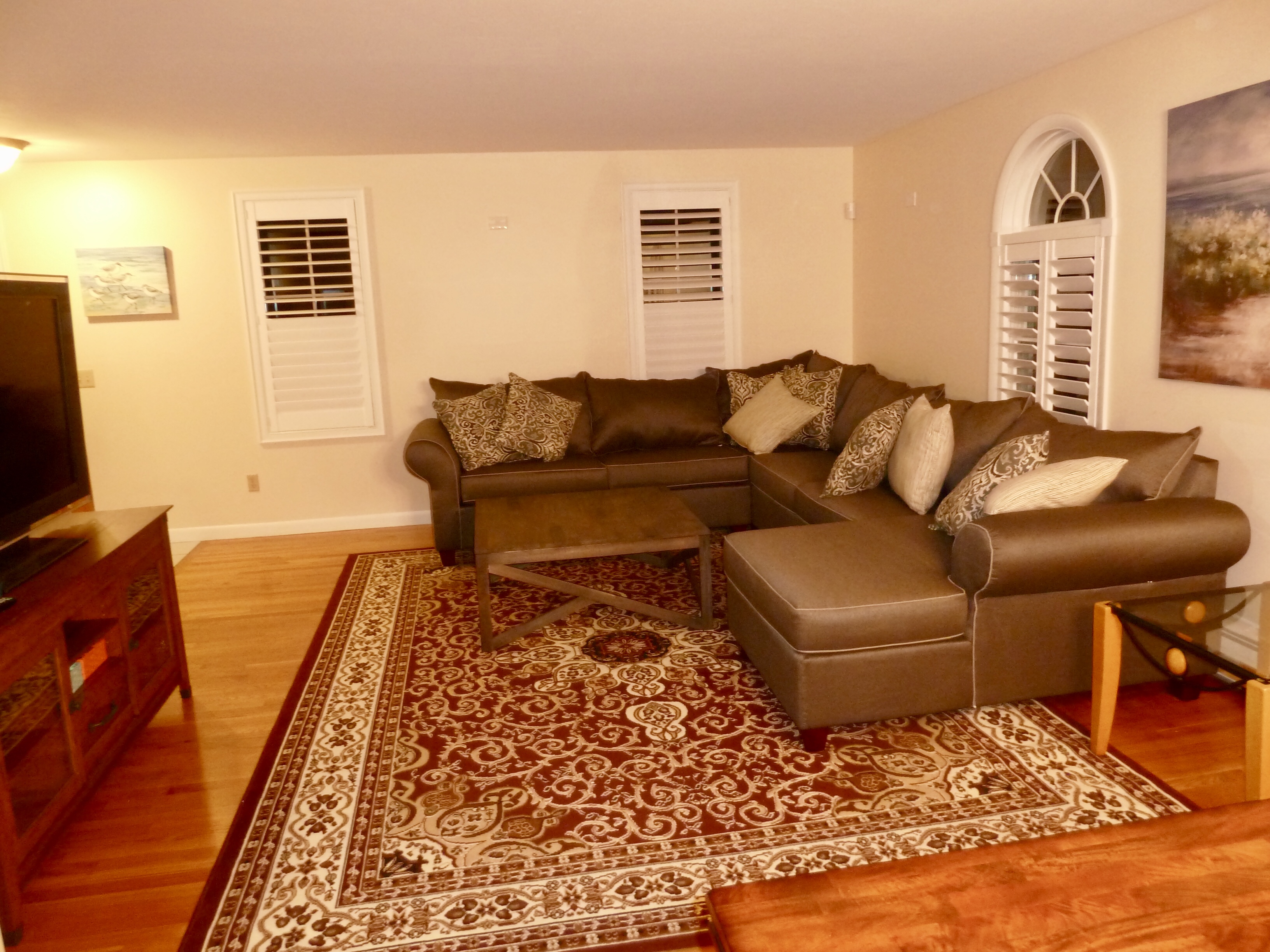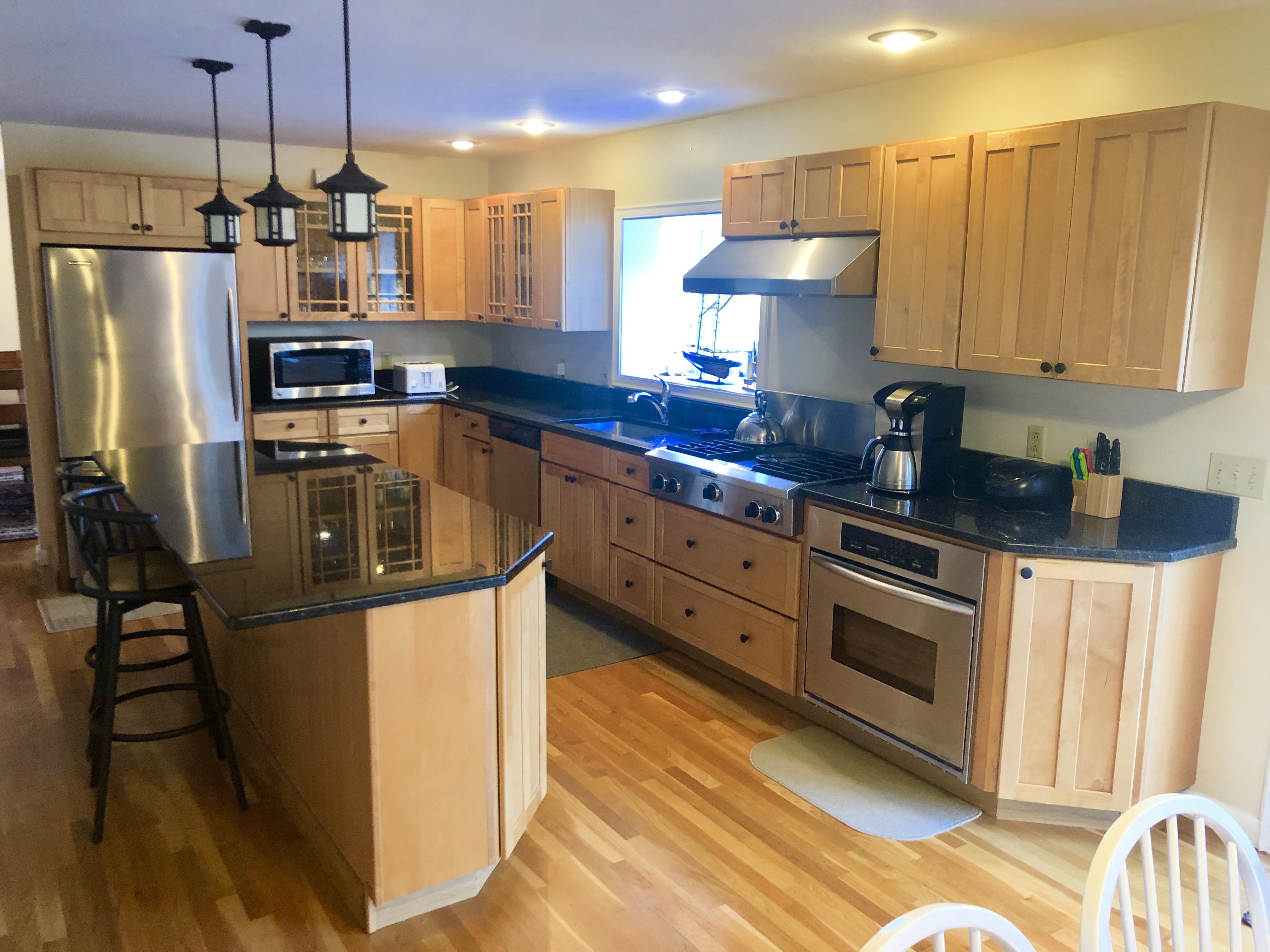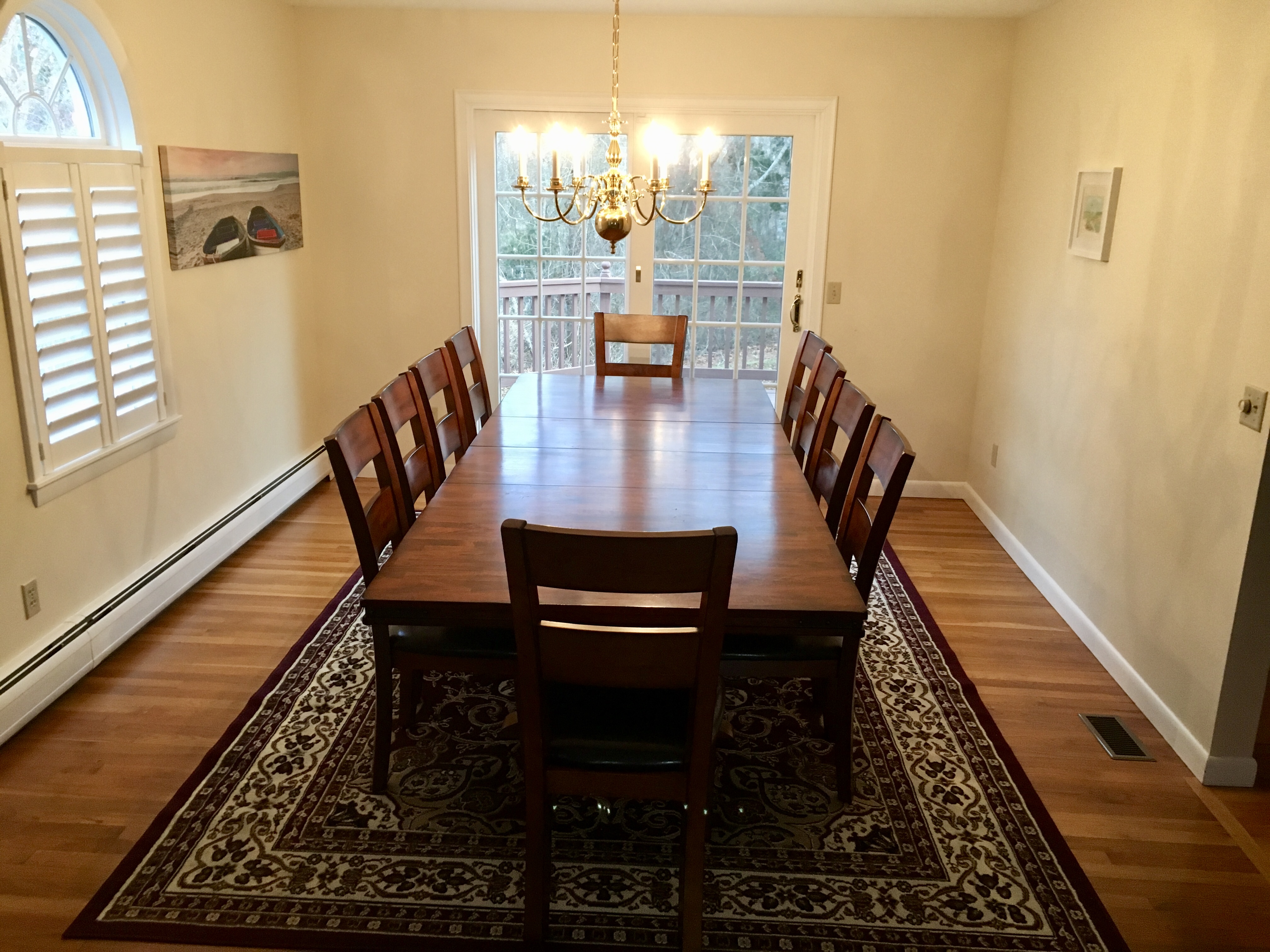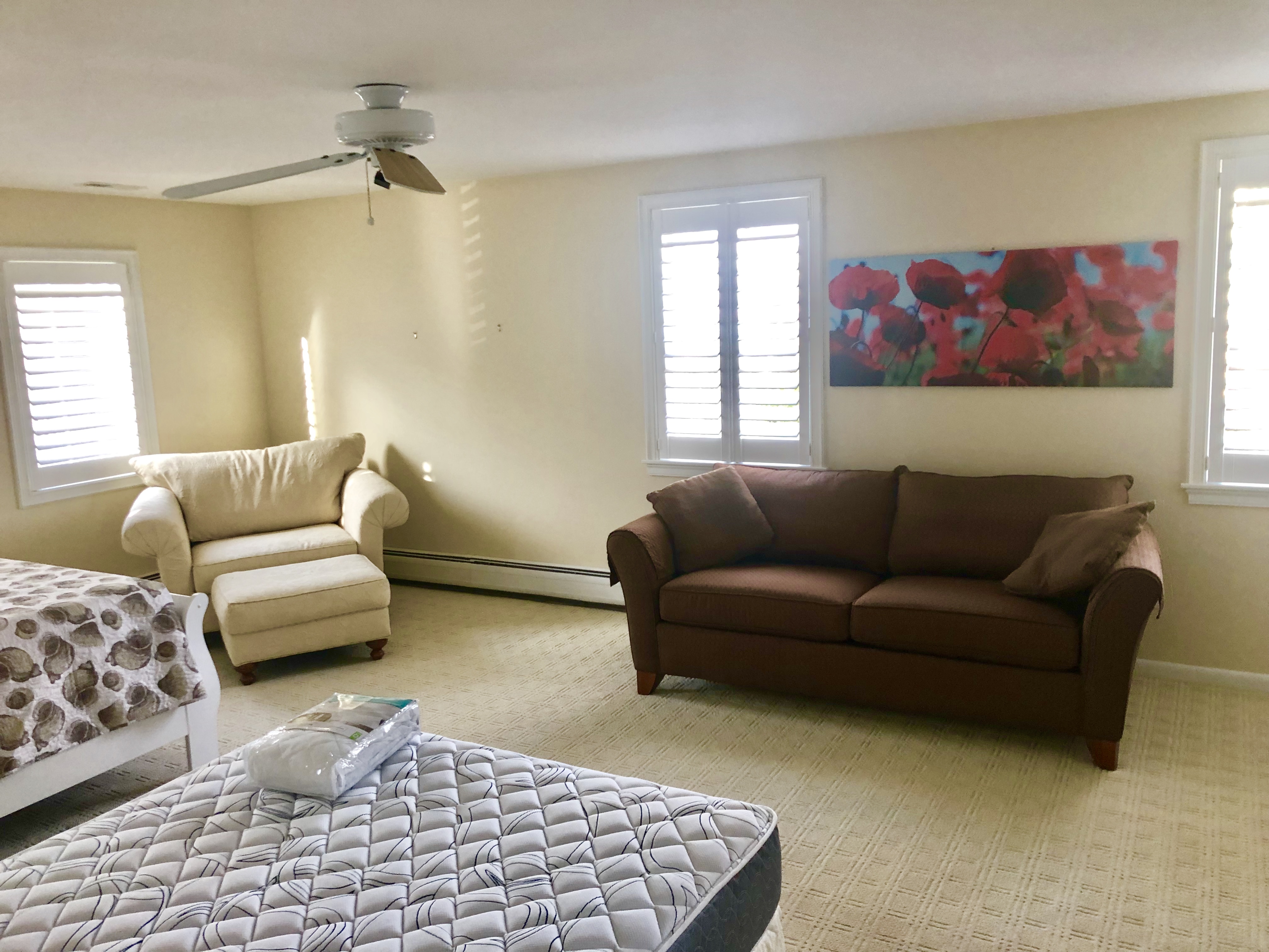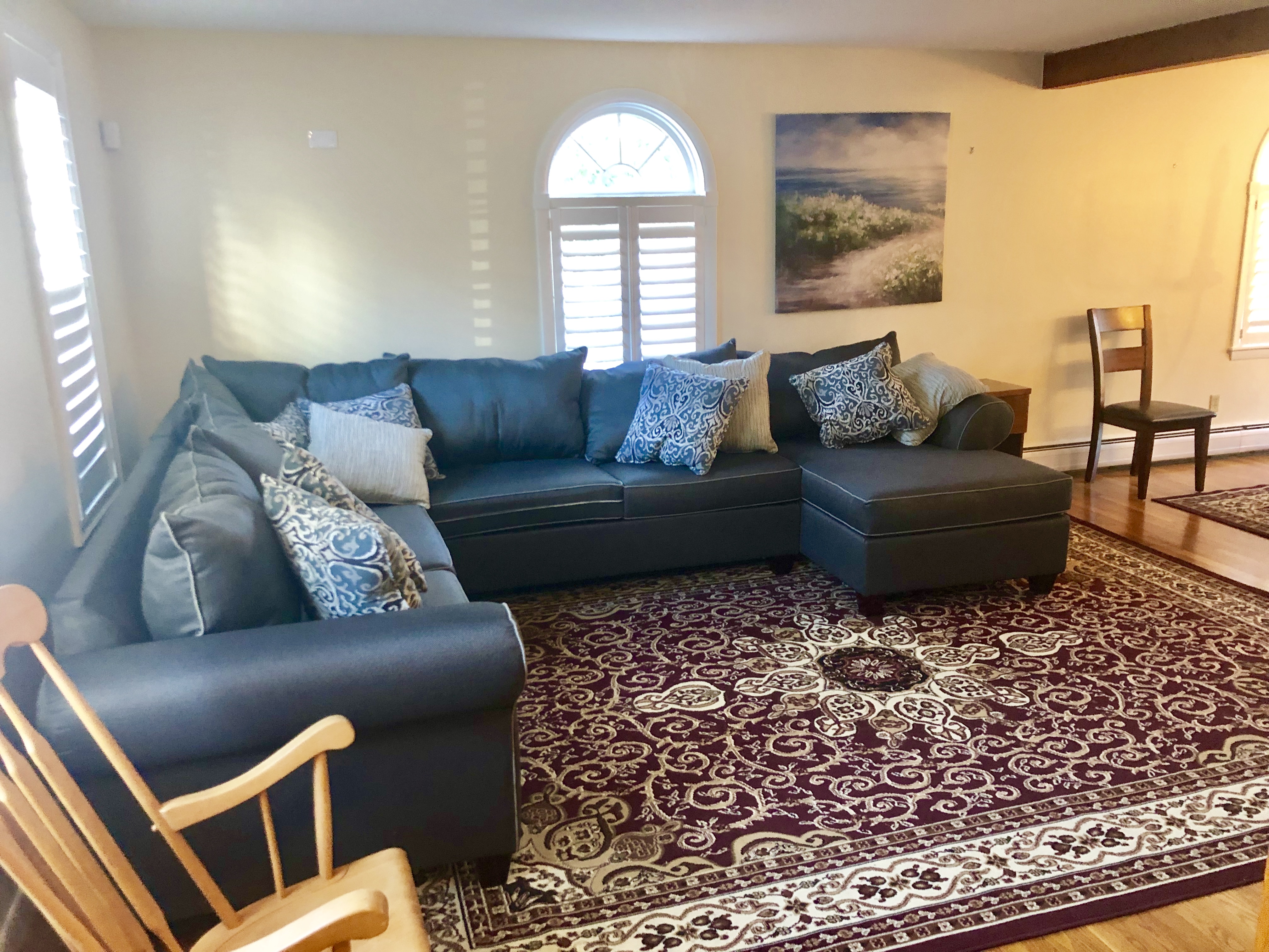 This spacious home has 4 floors which include: 7 voluminous bedrooms, Large living areas, High end designer kitchen with an enormous dining area, Two 55 inch and one 42 inch flat screen TVs. New beds/mattresses; Central A/C, fire place, free WIFI and Xfinity cable. Finished basement – walk out to a professionally manicured scenic yard. Wrap around deck and fire pit. Patio offering new furniture/grill/canopies. Outdoor shower which provides privacy in the alfresco open air. Two car garage, ping pong table and outdoor basketball net for the young at heart.