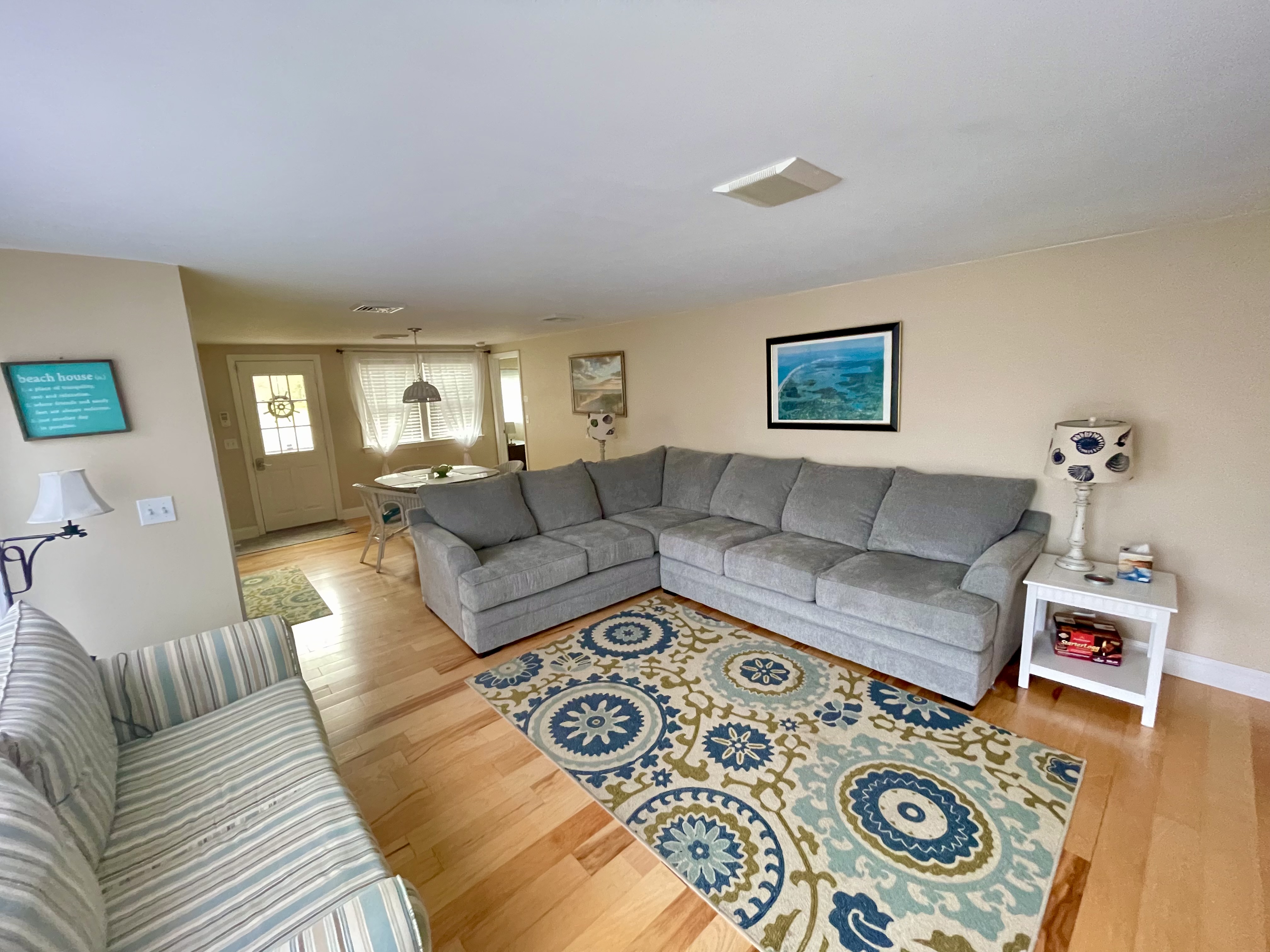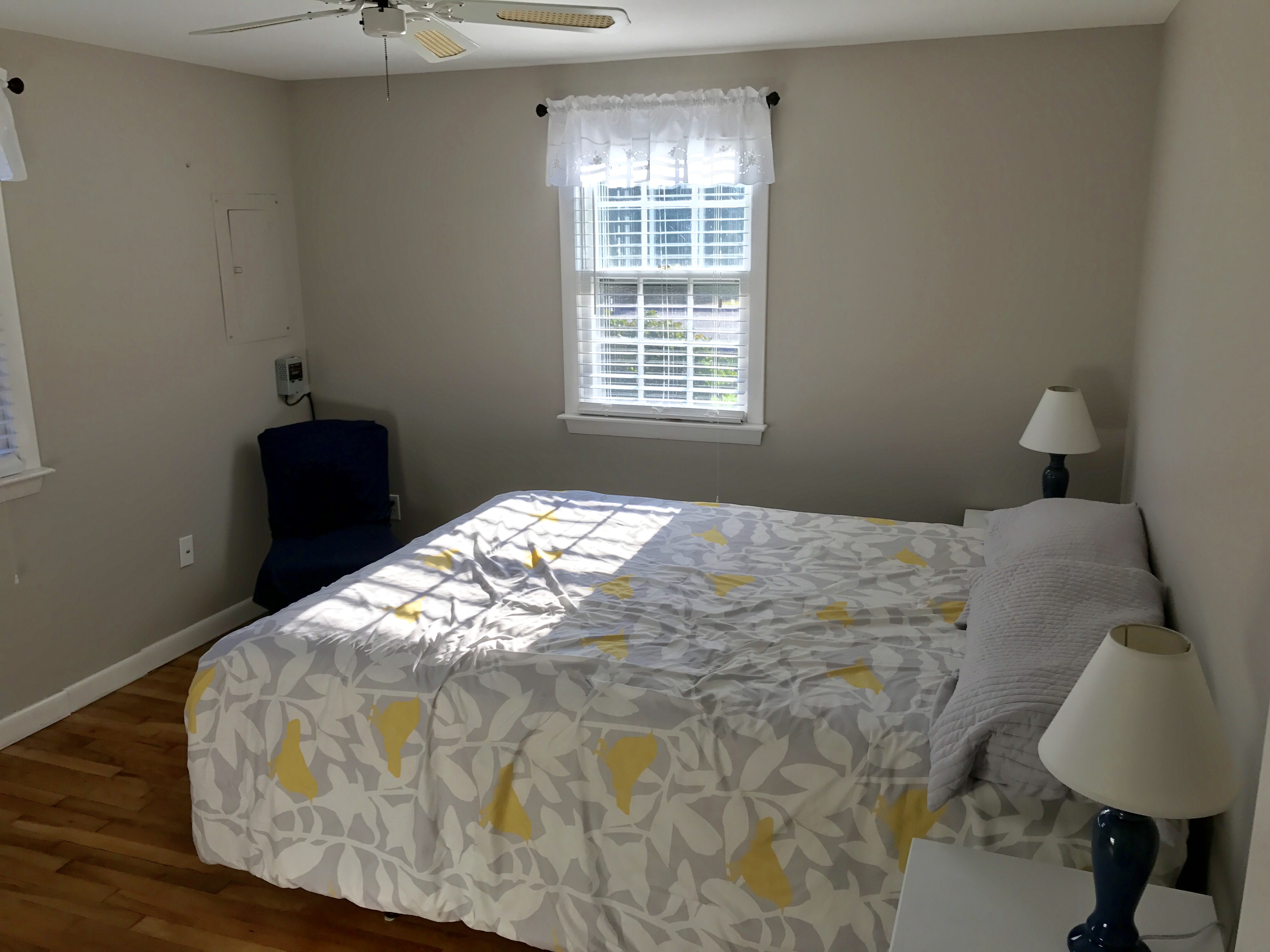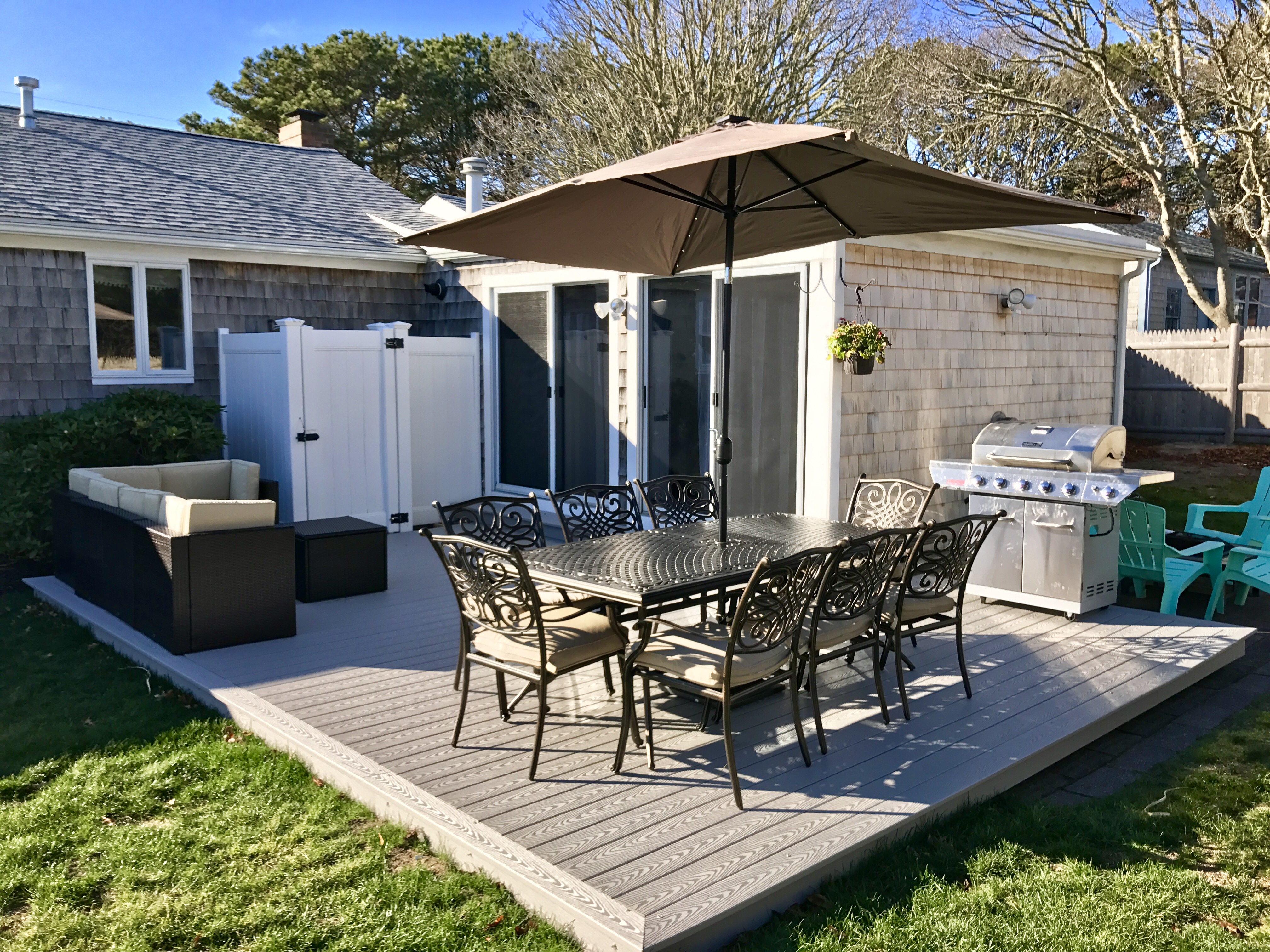 The home has a gated yard with a sundeck and a beautiful lawn and is located on a quiet street