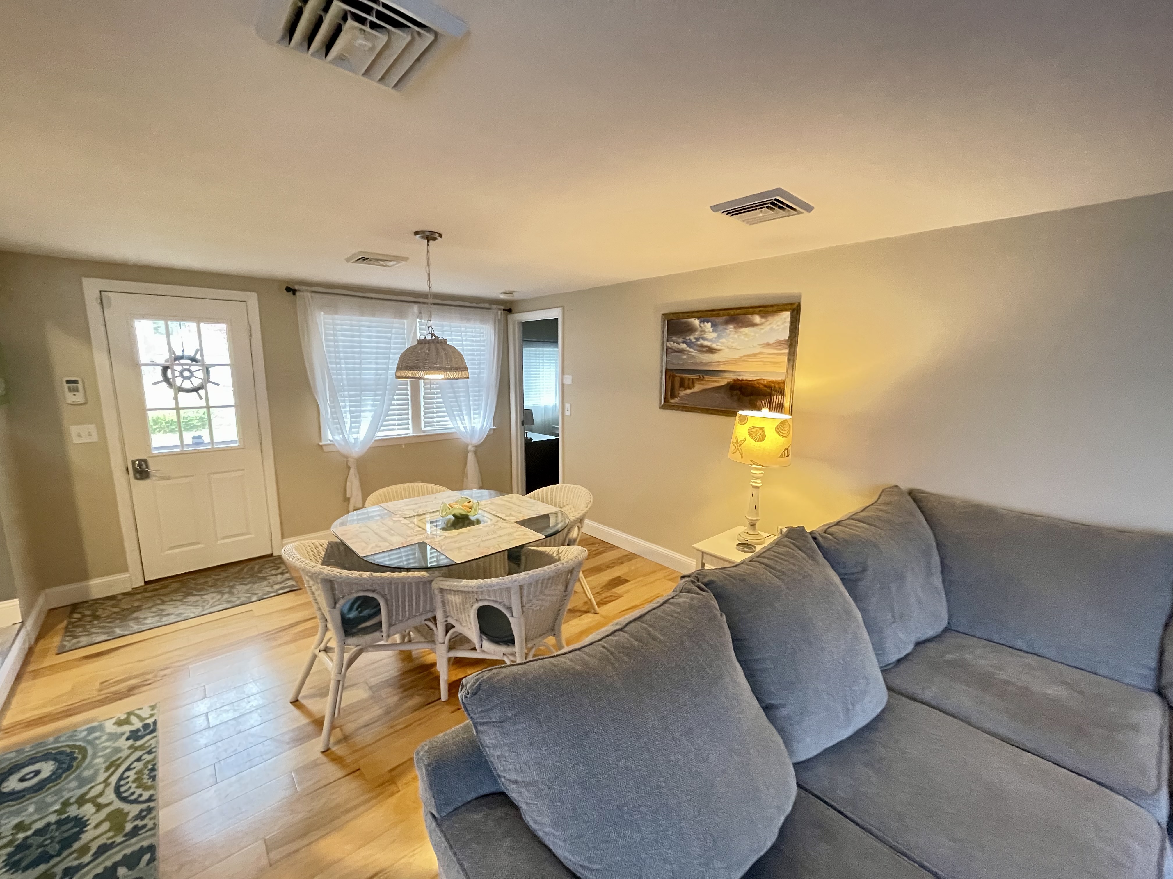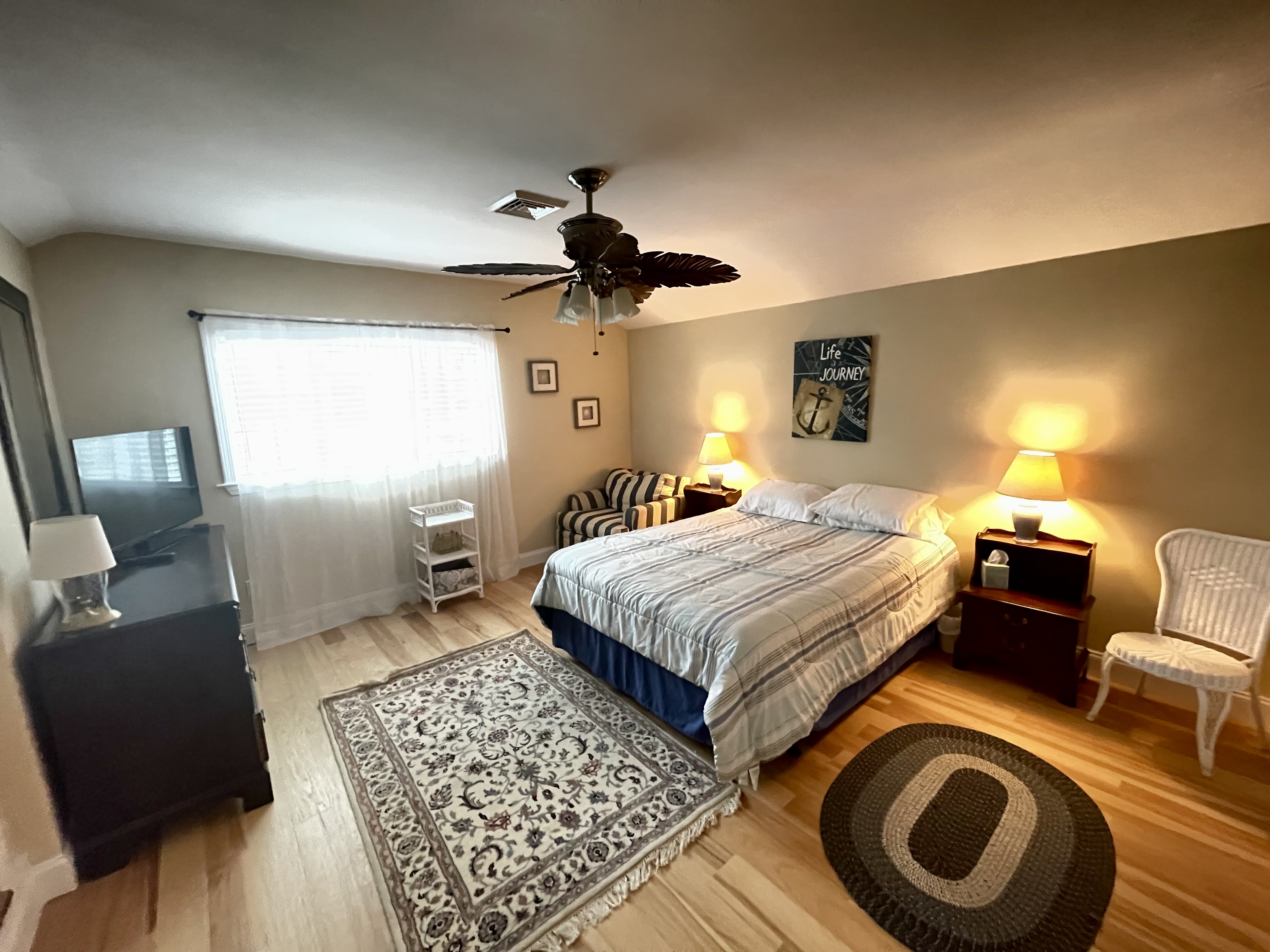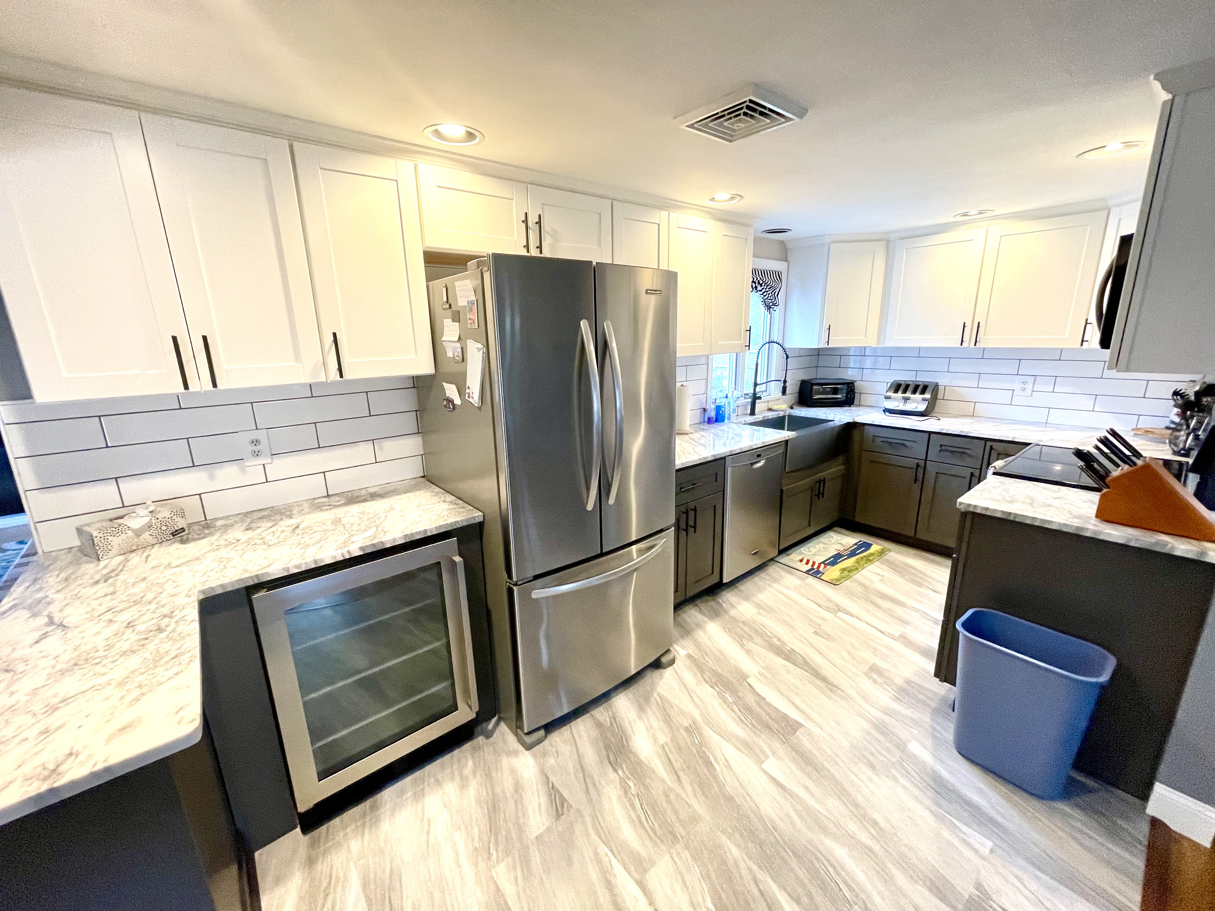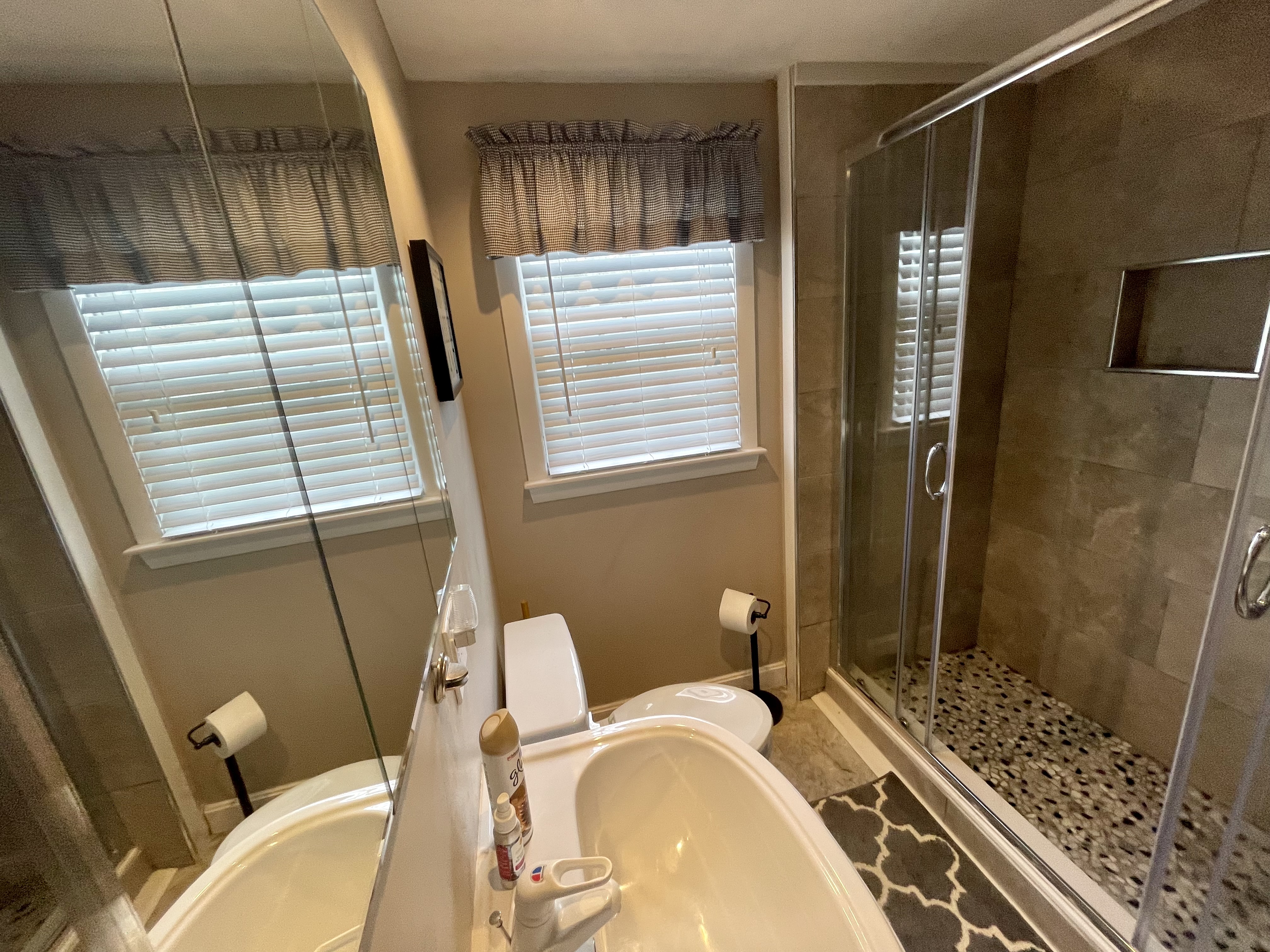 The home has a gated yard with a sundeck and a beautiful lawn and is located on a quiet street